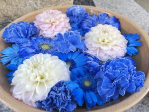 綺麗な飾りが所狭しと飾ってあり、手水舎もお花でいっぱい。